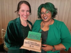 After a video featuring Carole Moloney, NP, of BMC’s Infectious Disease Program, Melissa Nass, MD, Medical Director of BMC’s Curbside Care, and patient Evania Barbosa, Alice Cruikshank, NP, of BMC’s Curbside Care program accepted the award.